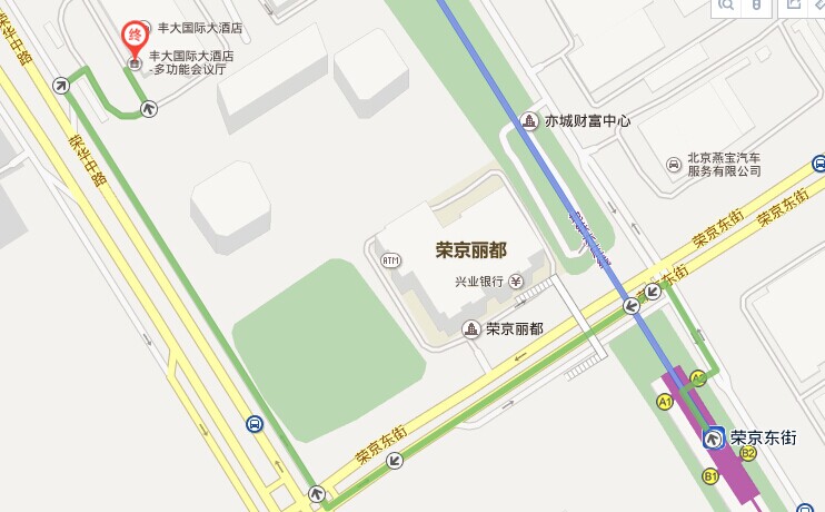 乘車路線:乘坐地鐵亦莊線到榮京東街站(A2口出)下車,步行870米即到