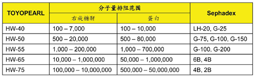 東曹的Toyopearl HW填料骨架為含羥基的親水性聚甲基丙烯酸樹(shù)脂,由于不含糖基,與其他做多糖的填料相比,不會(huì)和糖類樣品發(fā)生非特異性相互作用。