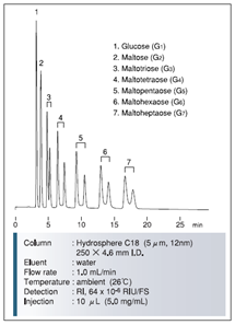 眾所周知,NH官能團(tuán)會(huì)和酮或者羧基發(fā)生反應(yīng)。但是,NH SG硅膠填料可以在有機(jī)相/水的流動(dòng)相體積下分離大多數(shù)的糖類化合物,而不發(fā)生上述化學(xué)反應(yīng)。NH SG硅膠在正相條件下使用,尤其是親水相互作用模式(HILIC)。作為典型的HILIC模式,在增加水相比例的條件下,洗脫增強(qiáng)。