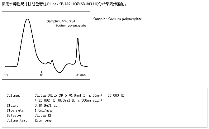 SB-802 HQ色譜柱是聚合物基質的水溶性SEC色譜柱,適用于各種分子量范圍的測定。溶劑可用DMF替換(除SB-802 HQ和SB-807 HQ以外),可分析極性聚合物。SB-804 HQ、SB-805 HQ可用于測定明膠的平均分子量。