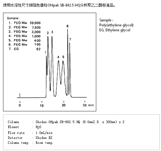 SB-802.5 HQ色譜柱是聚合物基質的水溶性SEC色譜柱,適用于各種分子量范圍的測定。溶劑可用DMF替換(除SB-802 HQ和SB-807 HQ以外),可分析極性聚合物。SB-804 HQ、SB-805 HQ可用于測定明膠的平均分子量。