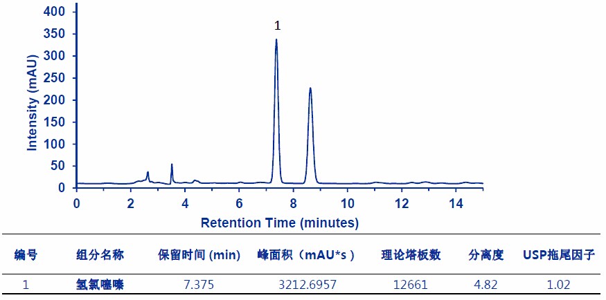 檢測(cè)波長(zhǎng):氫氯噻嗪檢測(cè)波長(zhǎng)為224nm;蘆丁檢測(cè)波長(zhǎng)為256nm。