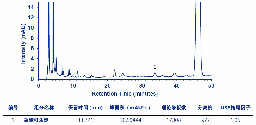 鹽酸可樂(lè)定供試品溶液圖譜