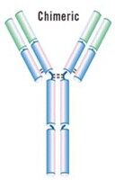用人IgG的恒定區取代小鼠IgG的恒定區,保留鼠單抗的可變區序列,形成一個人-鼠雜合的抗體。例如:Idec?pharmceutical,Genentech的小鼠抗CD20抗體,含人IgG1恒定區,用于治療B淋巴瘤。