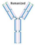 取其與抗原直接接觸的那段抗體片段(互補決定區,CDR)與人的抗體框架嫁接,經親和力重塑,可維持其特異性和大部分的親和力,同時幾乎完全去除免疫原性和毒副作用。人源化抗體成功的例子:Herceptin,Genentech公司的抗HER2/neu抗體,用于治療乳腺癌。是人表皮生長因子的受體-2(Her-2)重組DNA衍生的人源化抗體,95%的人源和5%的鼠源。