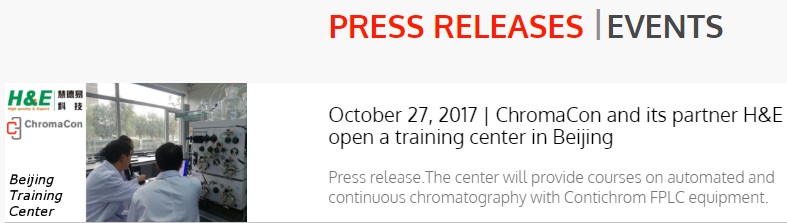 北京慧德易專注于層析領域十余年,現(xiàn)與瑞士ChromaCon公司強強聯(lián)合,將世界領先的Contichrom Discovery高通量快速純化技術及Contichrom CUBE雙柱連續(xù)流層析技術引進中國,并已于2017年在北京昌平生命科學園蛋白質(zhì)藥物國家工程研究中心成立慧德易實驗室&培訓中心,現(xiàn)已成功舉辦多期連續(xù)流技術培訓班。